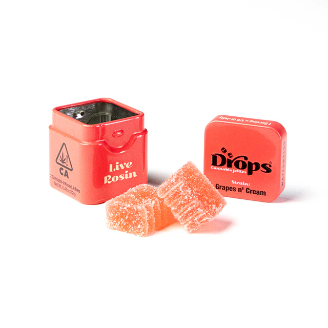 Drops are made with single-strain Live Rosin.This high-quality concentrate preserves a full-spectrum of all the psychoactive compounds found in a particular strain. Drops use all natural fruit extracts as well as pectin instead of gelatin. Vegan & Gluten Free