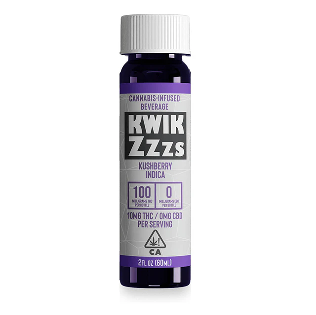 Kwik Zzzs Kushberry Indica is a fast-acting cannabis shot designed to ease insomnia and promote restful sleep. Each 2 fl. oz. bottle delivers 100mg of THC enhanced with calming herbs including lavender, chamomile, and valerian root. The result is a soothing blend of traditional botanicals and premium Kushberry indica extract, finished with a smooth elderberry flavor that makes every sip both effective and enjoyable. Specially crafted to help you unwind and drift off naturally, Kwik Zzzs is the most satisfying way to end your day and achieve deep, restorative rest.