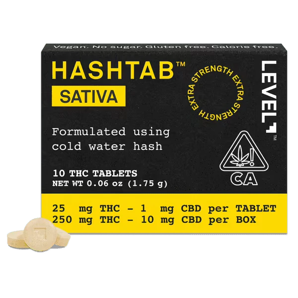 LEVEL Sativa Hashtabs deliver a clean, uplifting high through precise, swallowable tablets infused with 25mg of ice water hash each. Designed for consistent, long-lasting effects, these tabs activate in about 30–90 minutes and last for 2–4 hours, making them ideal for daytime creativity, social sessions, or energizing activities. Whether you're spending an evening around the campfire with friends or settling in for a movie marathon, Hashtabs provide a smooth, elevated sativa experience without sugar, smoke, or fuss. Each tablet is scored for easy splitting, so you can take a lighter 12.5mg dose if preferred. Discreet, potent, and reliable — the hash experience, perfectly measured.