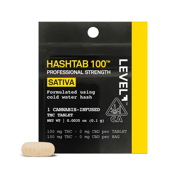The LEVEL Sativa Hashtab delivers a classic hash-forward experience in a convenient, swallowable tablet. Crafted from ice water hash, this professional-strength single pack contains one 100mg tablet designed for reliable, long-lasting effects.