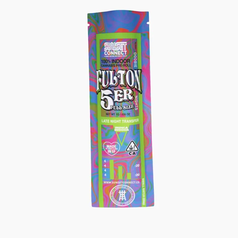 Sunset Connect Fulton 5er Magic Johnstoned is a flavorful hybrid preroll with a bright citrus twist. Known for its zesty aroma of sweet lemons and tart lemon candy notes, this strain delivers a smooth balance of uplifting creativity and calm relaxation. Ideal for daytime enjoyment or early evenings, Magic Johnstoned keeps the vibe elevated without tipping too far into sedation or overstimulation. Rolled by Sunset Connect, San Francisco’s equity-driven craft brand, this Fulton 5er represents the fusion of bold flavor, balanced effects, and authentic Bay Area cannabis culture.