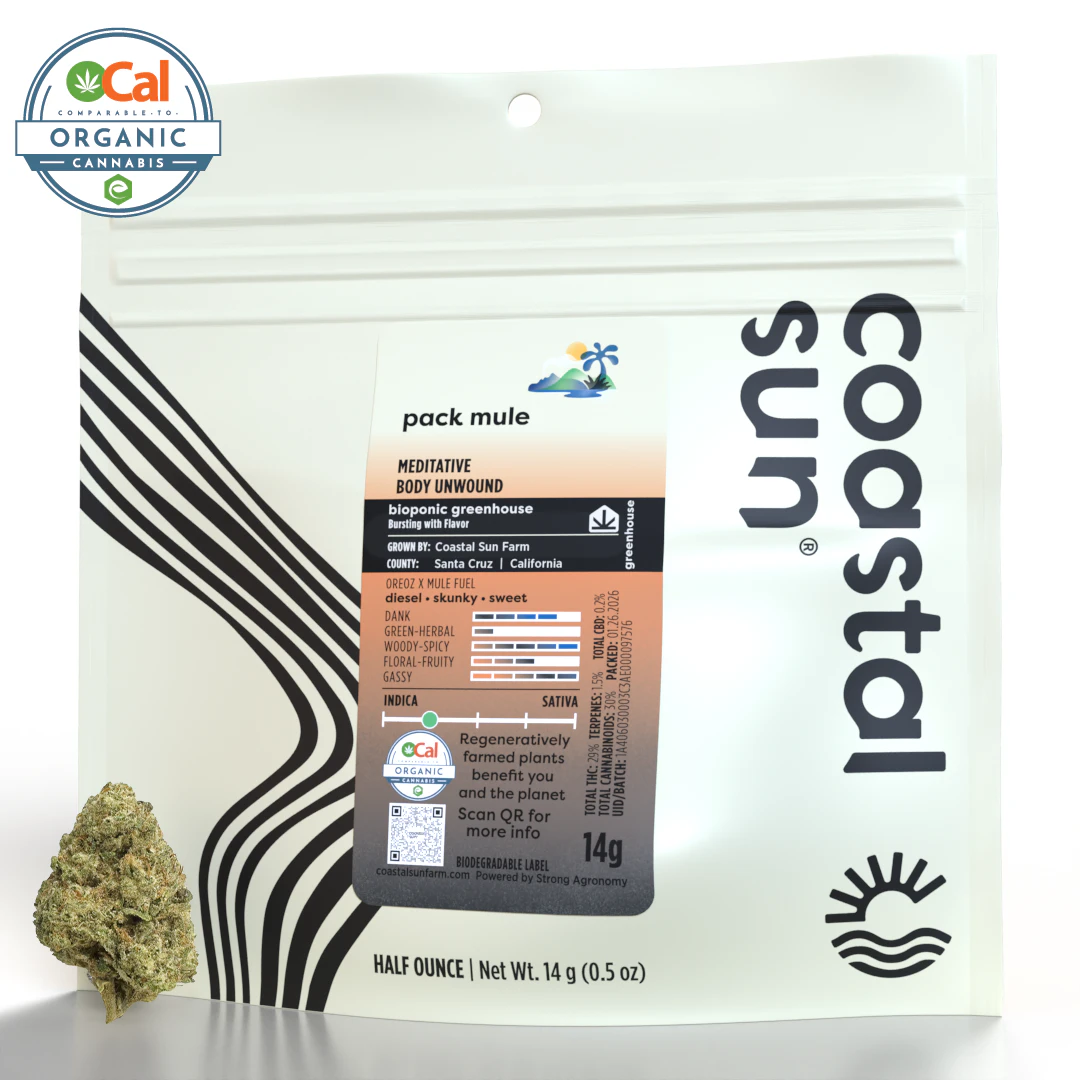 A versatile choice for low-key outdoor adventures or relaxed activities like gaming, meditating, or settling in for a movie, Pack Mule offers bold flavor and grounded presence in Coastal Sun’s Sun + Earth -certified 14g format.