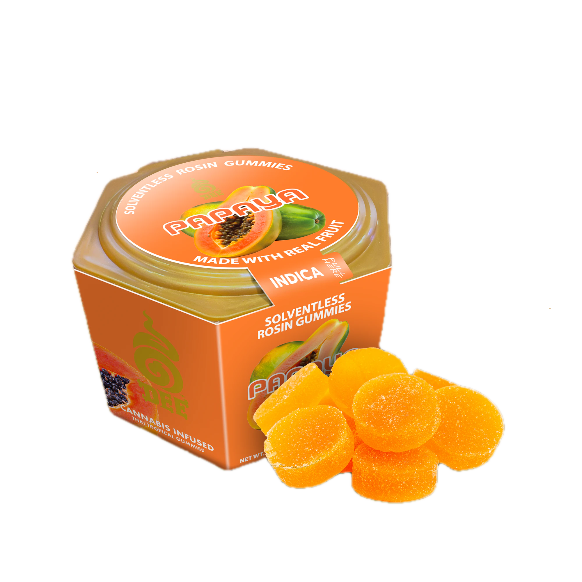 These gummies burst with juicy papaya flavor layered with hints of citrus, honey sweetness, and earthy depth. Infused with high-quality rosin, they offer a clean, terpene-rich edible experience designed for both flavor lovers and those seeking balanced effects.
