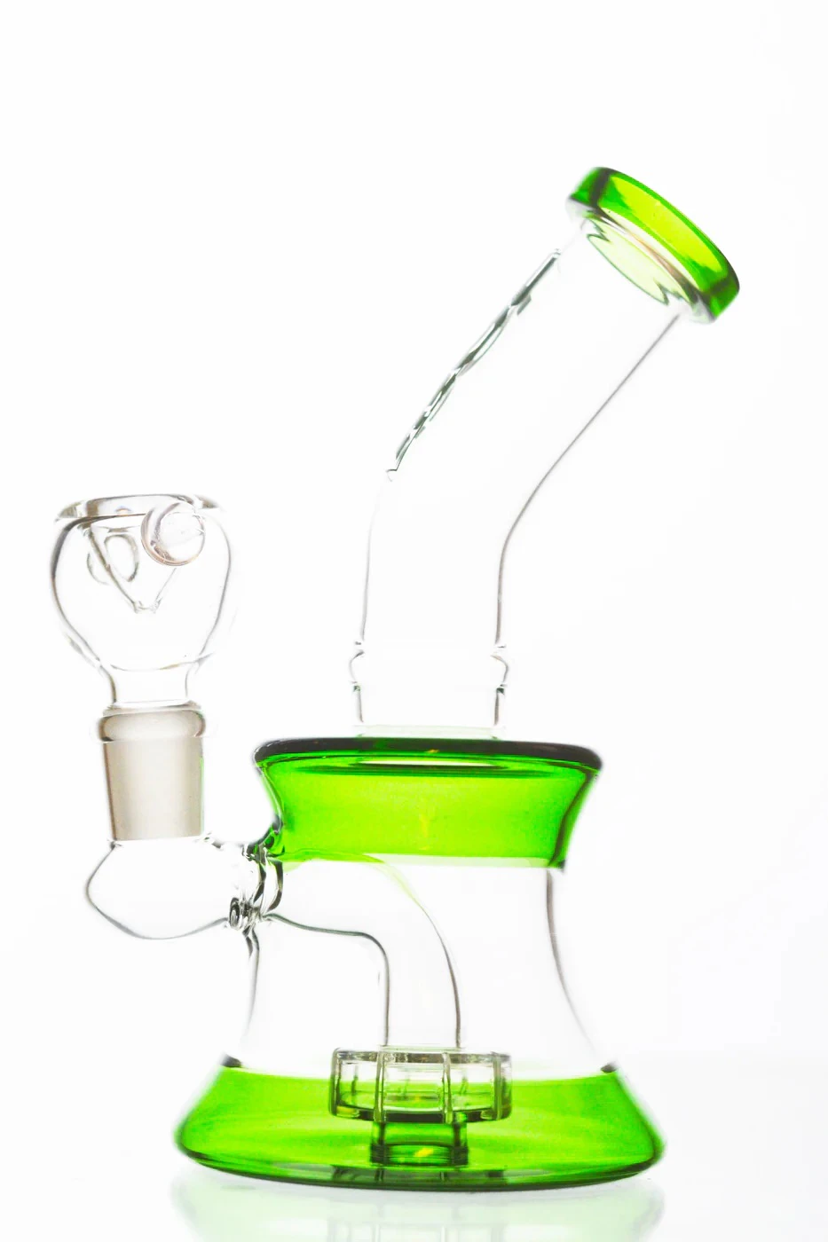 This 6.5" bong features a beautiful bent neck for clean, smooth hits. You can get a surprisingly large rip going in this bong and not have it creep up inside the mouthpiece. The Showerhead percolator is fixed to the bottom and has outwards facing percolation holes.