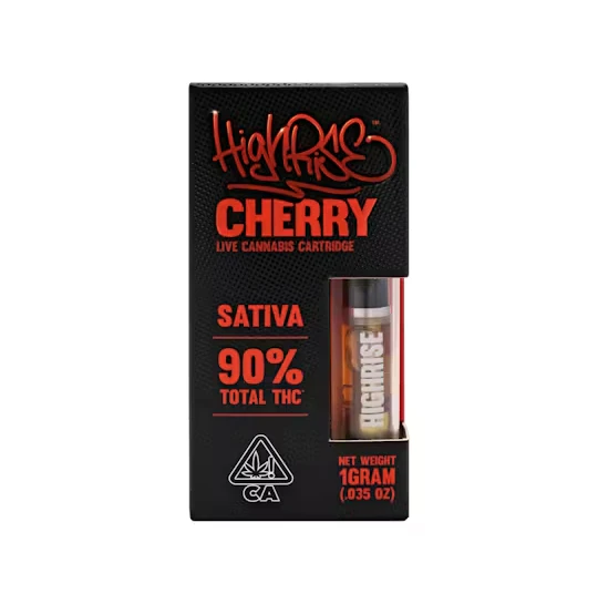 HighRise Cherry Live Cartridge brings a sweet, vibrant cherry flavor bursting with live cannabis terpenes. Every puff delivers a juicy, fruit-forward hit backed by ultra-potent performance — typically around 90% THC with no added flavors, fillers, or shortcuts.