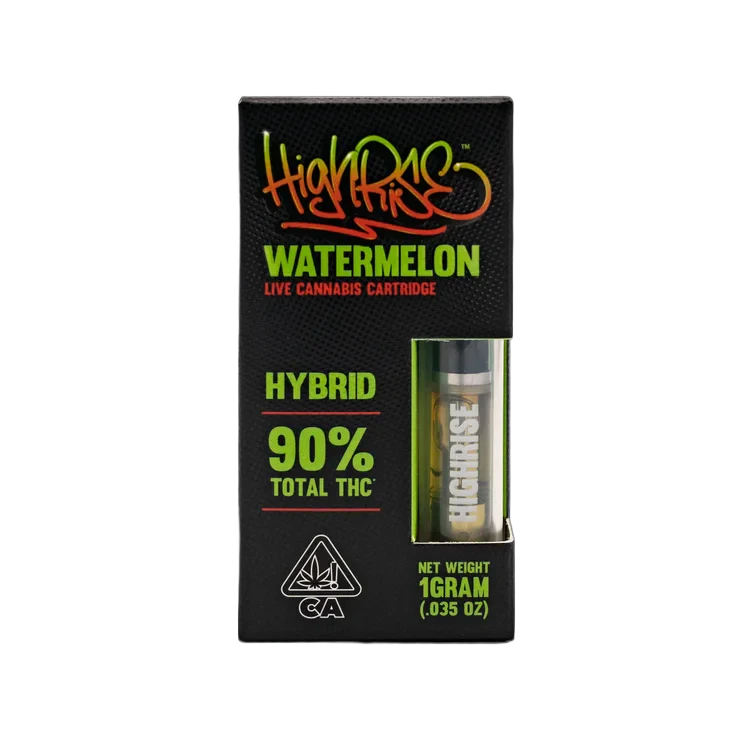 HighRise Watermelon Live Cartridge delivers LIVE VAPOR. LOUD FLAVOR. with a juicy, fruit-forward twist. Bursting with sweet watermelon notes and smooth, refreshing vapor, this indica offers a mellow, relaxing high perfect for unwinding at the end of the day. Crafted with live cannabis terpenes and ~90% THC, Watermelon combines bold flavor with ultra-potent effects in every pull. Clean, tasty, and always reliable — HighRise invites you to live the high life, one delicious puff at a time.