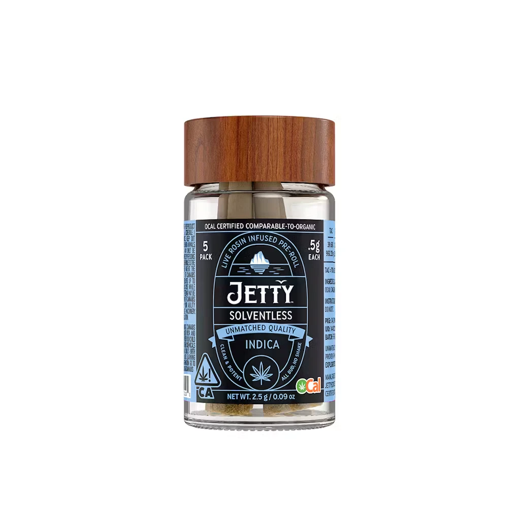 Rolled as 0.5g joints in a convenient 5-pack, these solventless pre-rolls are ideal for winding down with a rich, full-body high that delivers on flavor and effects. Find your flavor with Jetty.