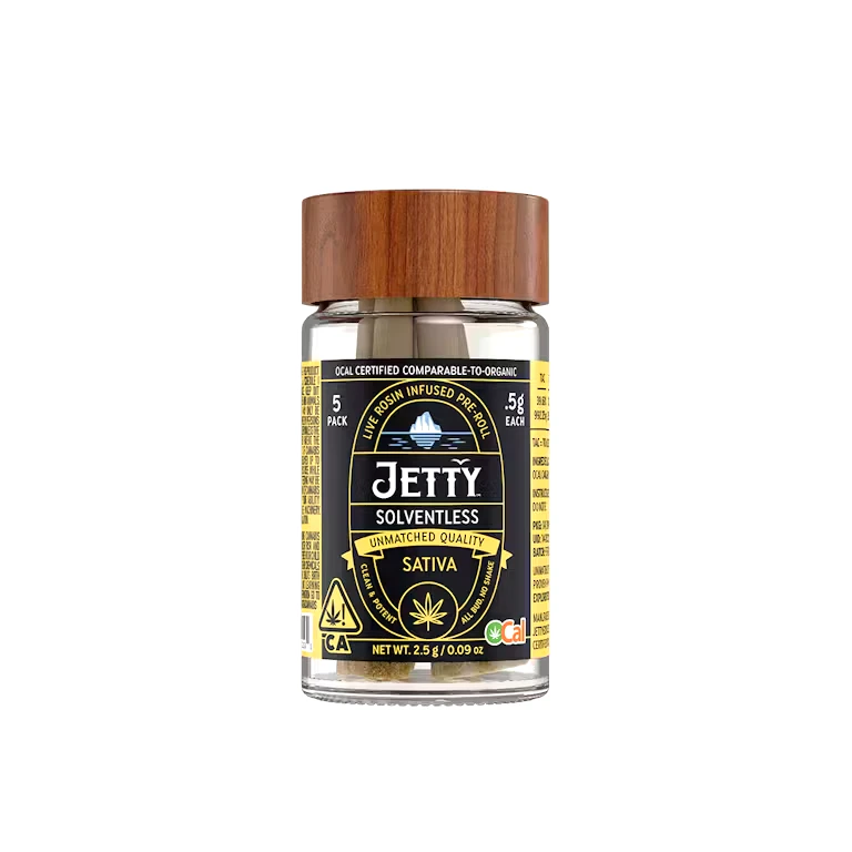 Jetty begins with OCal Certified top-shelf flower, chosen for standout flavor and potency, then infuses it with in-house live rosin made using only ice, water, heat, and pressure. This solventless process preserves the full spectrum of cannabinoids and terpenes for a richer, more expressive experience.
