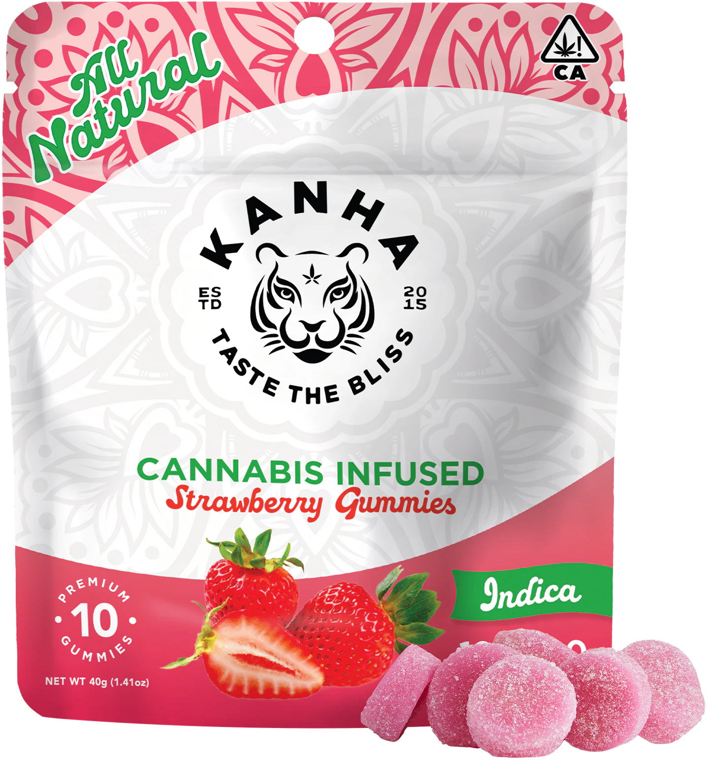 Kanha Strawberry Indica Gummies capture the bright color, juicy texture, and aromatic sweetness of ripe strawberries. Each real-fruit gummy delivers 10mg THC from top-shelf indica oil, complemented by a terpene trio of β-caryophyllene, myrcene, and α-humulene for deeply relaxing, chill-out vibes. With 100mg THC per pouch, these gummies offer consistent potency and a classic strawberry flavor that makes unwinding feel effortless.