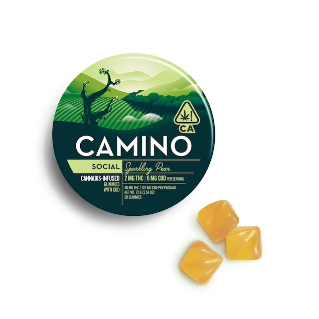 Camino Sparkling Pear Social Gummies offer a refreshing way to unwind and connect. Infused with a 3:1 ratio of CBD to THC, these pear-flavored gummies promote a euphoric yet calm high that enhances social experiences without overstimulation. With hints of pear and soft botanical sweetness, they evoke the relaxing ease of a sunny day in wine country — the perfect blend of balance and bliss. Whether you're catching up with friends or relaxing solo, Sparkling Pear is your go-to for an elevated, mellow mood.