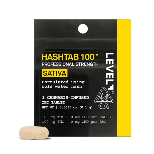 The LEVEL Sativa Hashtab delivers a classic hash-forward experience in a convenient, swallowable tablet. Crafted from ice water hash, this professional-strength single pack contains one 100mg tablet designed for reliable, long-lasting effects.