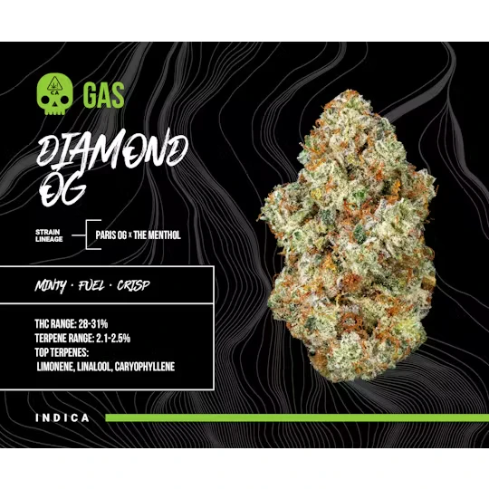 - Flavor & Aroma: Minty · Fuel · Crisp · OG Gas