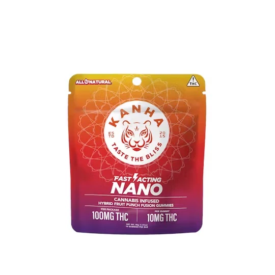 Kanha Nano Fruit Punch Gummies blend juicy apple, citrus, and tropical fruit flavors into a refreshing hybrid edible designed to uplift body and soul. Each gummy contains 10mg THC, enhanced with hybrid terpenes like α-bisabolol, α-pinene, and β-caryophyllene for a well-rounded, balanced effect profile. Powered by Kanha’s trusted nano-emulsification technology, these gummies deliver faster onset and improved absorption, letting effects take hold in just minutes. With 100mg THC per pouch, Fruit Punch Fusion offers consistent potency, delicious tropical flavor, and mood-boosting experiences that feel like a warm summer breeze all year long.