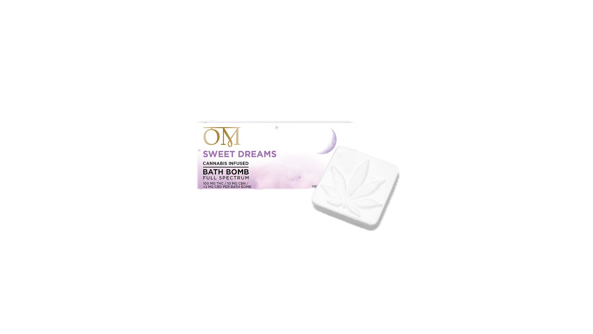 Sweet Dreams Bath Bomb from OM delivers a soothing aromatic blend of lavender and vanilla designed to help you unwind and relax.