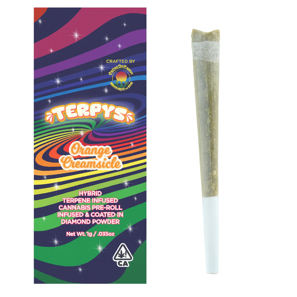 Crème De Canna – TERPYS Orange Creamsicle (Terpene Infused & Diamond Powder Coated Pre-Roll)