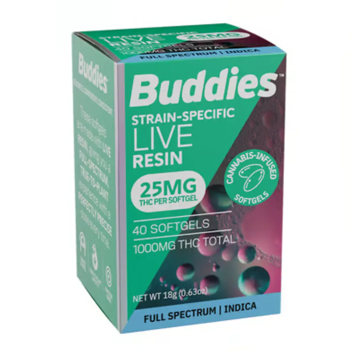 Experience maximum convenience with Buddies’ high-quality, pharmaceutical-grade live resin softgels. Each capsule captures a full spectrum of strain-specific cannabinoids and terpenes, delivering a synergistic and well-rounded cannabis experience.
