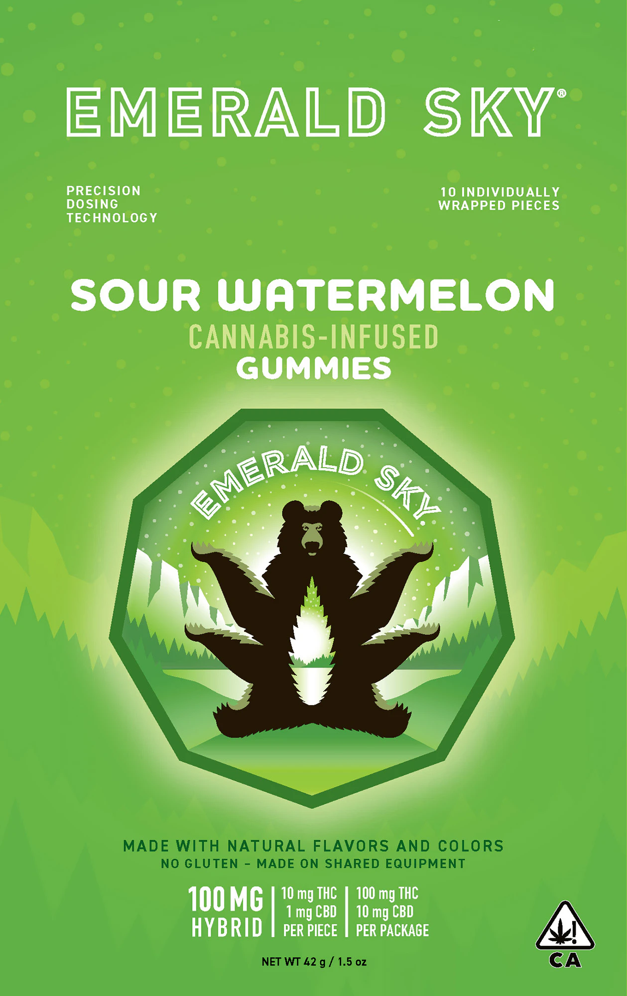 Emerald Sky Sour Watermelon Gummies (100mg THC)