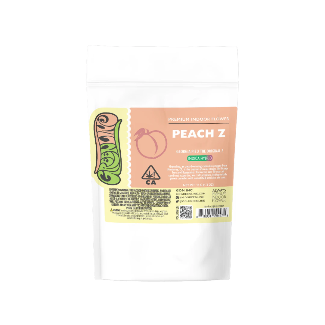 Greenline Peach Z 14g delivers a full half-ounce of beautifully cultivated hybrid flower with a bright, juicy flavor profile and balanced effects. Born from Georgia Pie and The Original Z genetics, this strain boasts the aroma of ripe peaches and citrus zest with a hint of earthy mango spice. The high offers an ideal mix of uplifting euphoria and mellow calm, making it perfect for both social sessions and relaxed solo evenings. Grown with Greenline’s signature indoor hydroponic precision, this half-ounce showcases dense, trichome-rich buds that preserve top-shelf flavor and potency.