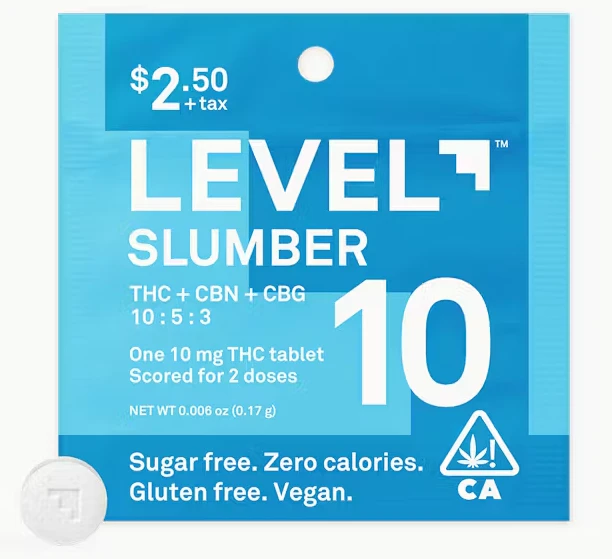 Struggling to find a natural and effective way to unwind and get a good night's sleep? Then forget sugary gummies and late-night snacks and try LEVEL 10 Slumber. We've combined the power of 10 mg of delta-9 THC, 5 mg of CBN, and 3 mg CBG in a carefully balanced formula designed to gently lull you into a state of relaxation and promote restful sleep. These highly effective, long-lasting tablets are sugar-free, gluten- free, vegan, and contain zero calories. They're scored for easy splitting so you can customize your dose to find the perfect level of tranquility. Simply swallow with liquid.