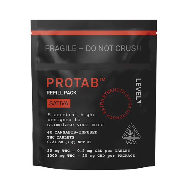 If you're the type of person that just can't get enough of a good thing, then the Sativa Protab Refill Pack is for you. Each Refill Pack contains 40 tablets, and each swallowable tablet contains 25 mg of THC and takes effect in 30–90 minutes, with a duration of 3–6 hours. Should you want to consume a lighter dose, they're scored so you can easily split one in half.