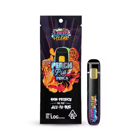 Peach Pie by Loud + Clear is a rich indica all-in-one vaporizer crafted for dessert lovers who want bold flavor and elevated potency. Made with no distillate, this rechargeable USB-C device delivers a smooth, terpene-forward experience in a convenient ready-to-use format.