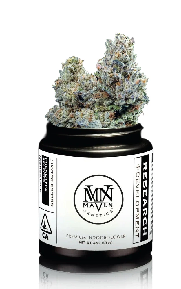 This R&D phenotype pulls decisively from Prizm, expressing angular, dense nugs layered in deep purple tones and coated in a resinous surface that signals both structure and potency. True to Maven’s research selections, bag appeal is immediate and commanding.