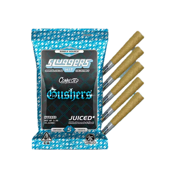 Gushers is the latest collaboration between Sluggers and Connected, featuring a perfectly balanced hybrid bred from Triangle Kush × Gelato #41. Known for its smooth candy-like sweetness and fruity berry character, this cultivar delivers a flavorful and approachable smoking experience.